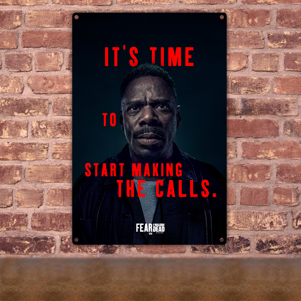Add this Fear The Walking Dead Season 6 Strand Quote Metal Sign to your media room, office, dorm room, and more to show some love for your favorite series. Featuring Victor Strand surrounded by his Season 6 quote, this metal sign gives any room a noticeable upgrade.